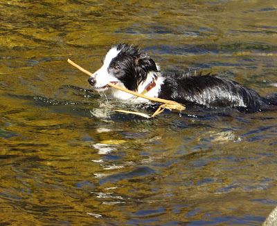 Yoko is our only "real" water dog. Kilt will swim, only because she will not be outdone when it comes to anything. But, Yoko is all about water. I bet she would be a sensational dock diving dog. I'm still urging Wayne to try it with her!